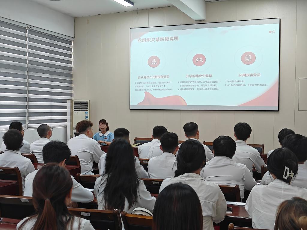 针对毕业生党员组织关系转接问题,党支部制作《组织关系转接指南》,详细说明“提出申请—党组织审核—系统转出—新支部报到”四步流程。学生第一支部书记郑燕丽重点强调:“组织关系转接务必在有效期内完成,转接期间可通过‘党员e家’线上平台查询进度、咨询问题,确保每名党员‘离校不离党’。”