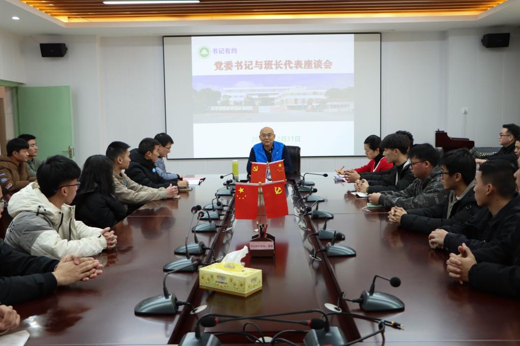 为充分了解学生心声,为学生关注的热点难点问题答疑解惑,同时进一步落实立德树人的总目标,加强学生的个性教育,培养德智体美劳全面发展的社会主义建设者和接班人,日前,院党委书记万泉以倾心聆听、充分沟通为主要方式,以全面推进“三全育人”,培育时代新人为主要目的,举行了“书记有约”学生社团骨干代表、宿舍舍长代表、班长代表系列座谈会。三场座谈会均进行了两个多小时的座谈交流,座谈会现场学生代表畅所欲言,万泉书记与学生代表亲切交流,现场气氛热烈。