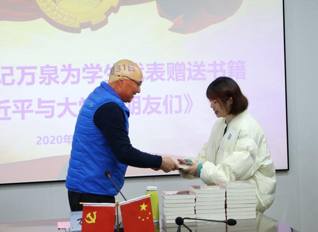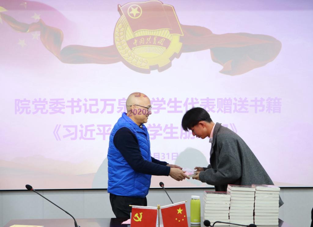 会后,万泉书记向学生代表及各系学生科长赠送书籍《习近平与大学生朋友们》。《习近平与大学生朋友们》出版后,院党委深刻认识到该书是深入学习习近平总书记关于青年工作的重要思想的鲜活读本,对做好新时代青年工作、助力当代青年健康成长具有重要示范意义,引导同学们从不同年代青年与时代共奋进的真实经历中收获感悟、汲取力量,在思想成长、专业学习与社会实践方面融合发展。