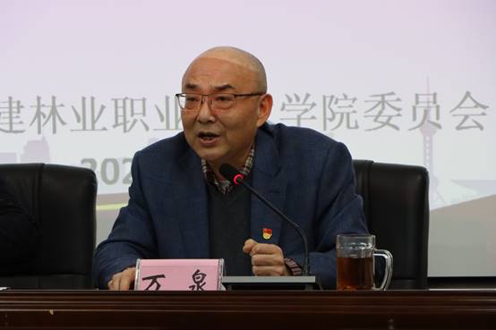 述职汇报后,院党委书记万泉总结讲话。他代表院党委向过去一年各系党总支和直属党支部辛勤的付出表示感谢。他表示,2020年是极其不平凡的一年,在做好常态化疫情防控的同时,还要高效推进正常教学秩序。在各个二级党组织的共同努力下,学院顺利推进了省级示范性现代职业院校建设验收、第二届省级文明校园创建验收、2020年巡视整改和省级“双高”院校申报等重大工作,充分发挥了11个基层党组织的战斗堡垒作用,进一步稳固了学院取得的发展成就。万书记提出四点要求:一是抓党建,带队伍。党建工作是首要任务,在把党建工作扛在肩上的同时,要带好队伍,做好组织建设和作风建设;二是抓安全,保平安。安全是底线,要切实做好保障师生人身安全和师德师风建设两大主线工作,维护校园和谐稳定;三是抓整改,立规矩。要把党的政治建设摆在首位,保质保量按期做好巡视整改工作,建章立制,按规矩办事,提高学院治理能力;四是抓争先,创一线。要贯彻好学院“十四五”规划,高质量发展各项工作,在争先创优上,力争获得一批优质的立项项目,创建一线活动品牌,提升学院社会影响力和知名度。
