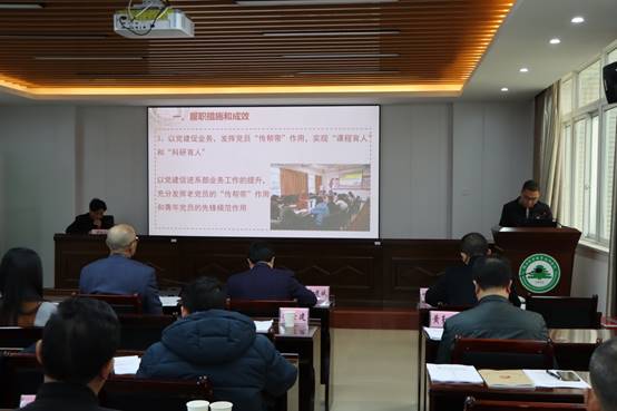 会上,直属第一党支部书记廖世建、直属第二党支部书记陈政、直属第三党支部书记黄勤坚、直属第四党支部书记郭先根、林学系党总支书记徐洪、建筑工程系党总支书记王云彪、艺术传媒系党总支书记成榕、经济管理系党总支书记谢福荣、信息工程系党总支书记吴奇镇、园林系党总支书记陈剑勇、交通工程系党总支书记李肇锋先后就各自一年来的党建工作情况、工作特色成效、存在的不足及下一年度工作思路进行了述职。分管院领导逐一对应点评,指出存在问题和工作建议。