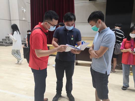 2021年9月15日全院师生核酸检测工作中,直属第一支部全体党员同志在核酸检测现场开展志愿服务,协助师生完成核酸检测登记,保障核酸检测工作的有序进行。