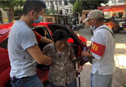 教工党支部党员徐豪老师带老人到医院打疫苗