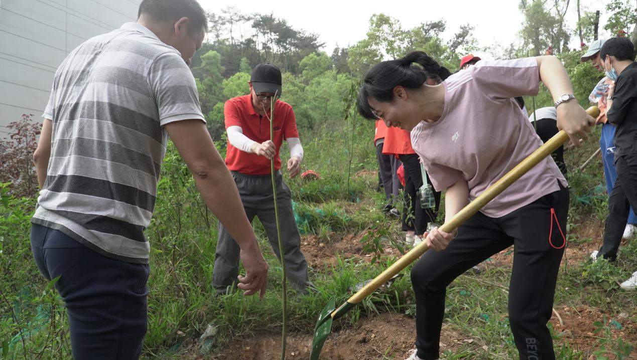 老师和同学们抡起锄头,挥舞着铁锹,每道工序、每个环节都一丝不苟,确保植一棵、活一棵,为天麟山增添一抹生机和活力。