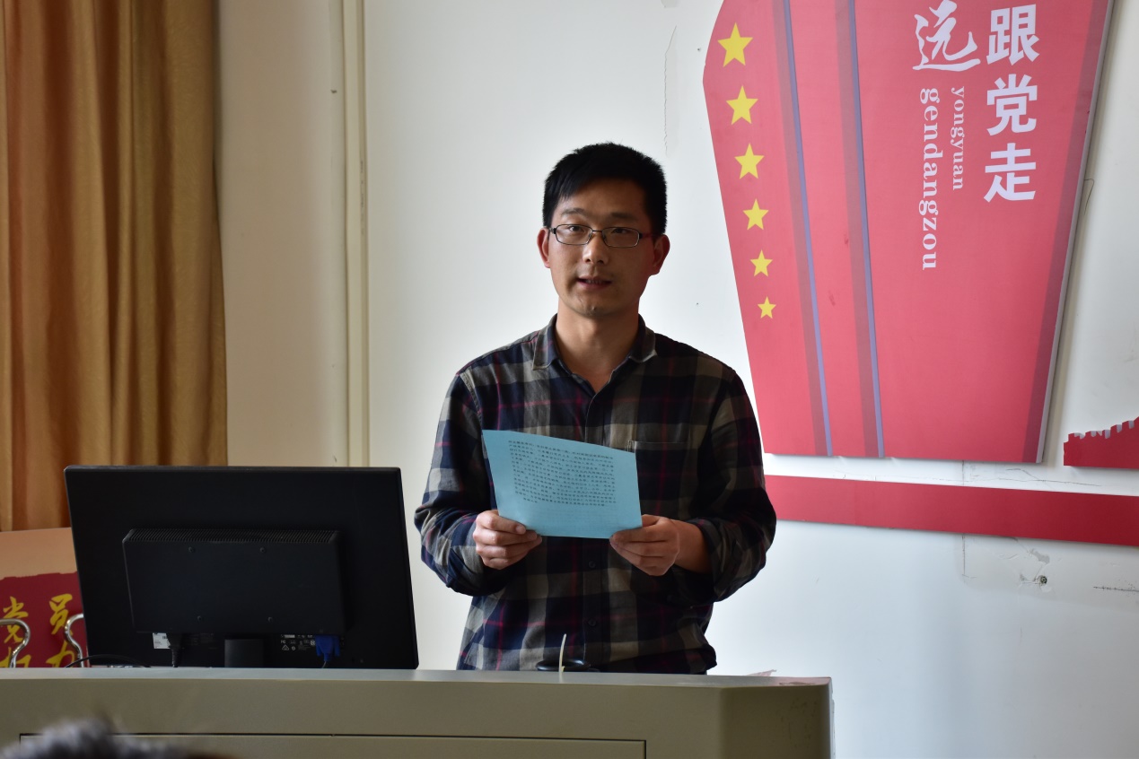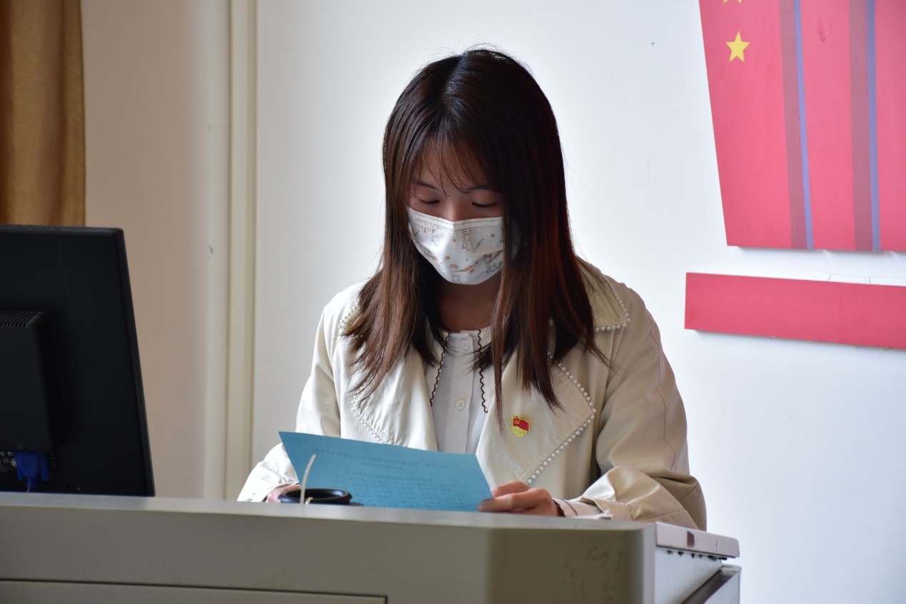 随后,预备党员代表肖淑婷同志发言,她表示,入党宣誓是一名党员政治生命开始的象征,她将会永远记住这个神圣的时刻,把入党誓词作为自己终身的追求、终身的修养和终身的实践。同时,她说到,要深深地感谢党组织对他们的关心、培养和教育;感谢党组织的老师和老党员对他们的关爱、激励和帮助。将高举党的旗帜,用实际行动争做一名先进的共产党员,一名合格的共产党员!