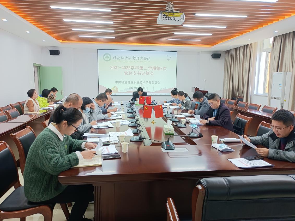 2022年4月4日上午,2021-2022学年第二学期第2次党总支书记工作例会在实训二五楼会议室召开,会议由党委副书记严绍裕主持,组织部(统战部)部长李霞、宣传部部长邹小燕、各系党总支书记、专职副书记及组织部(统战部)全体成员参加会议。