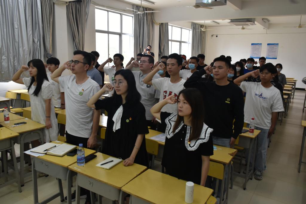 紧扣“毕业季”和 “七一”这一重要时间节点,学生第二党支部书记吴文杰带领全系全体2022届毕业生党员进行了一次重温入党誓词宣誓活动,重温了大学以来的入党初心和入党心路历程,进一步筑牢共产党员意识,希望毕业生党员牢记入党誓词,时刻以入党誓词的要求严格要求自己,提升自己,发挥自己,不忘初心,牢记使命,为党的事业奋斗终生。