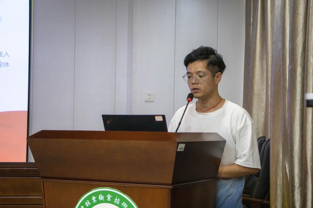 林学系专职组织员罗勇对标党支部建设“七个有力”,汇报了林学系学生第一党支部“党委-党总支-党支部-党小组-党员”的五级模式运作模式,依托校外阵地服务师生,为洋坑村编撰美丽乡村的建设规划书,助力乡村振兴,打造创新党支部。