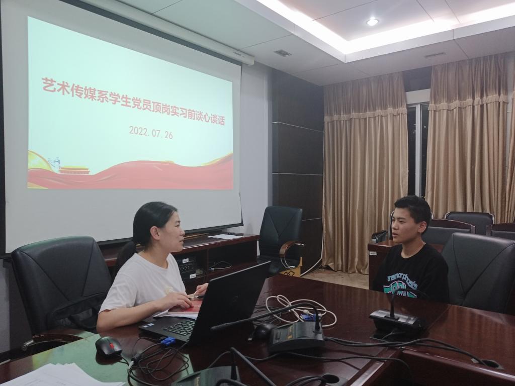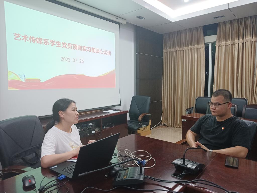 顶岗实习是高职高专学生人才培养的重要组织部分,也是学生走上社会前与社会磨合的重要的“思想教育黄金时段”。为进一步做好学生顶岗实习期间党建和思想政治教育工作,解决“最后一公里”问题。艺术传媒系党总支于2022年7月26日在天麟校区综合楼604开展2020级学生党员顶岗实习前专题教育。本次专题教育由系党总支专职组织员欧阳昭勇主持,系党总支副书记叶章球、学生第一党支部书记李延卿、学生第二党支部书记唐婧及20级学生党员参加了本次活动。