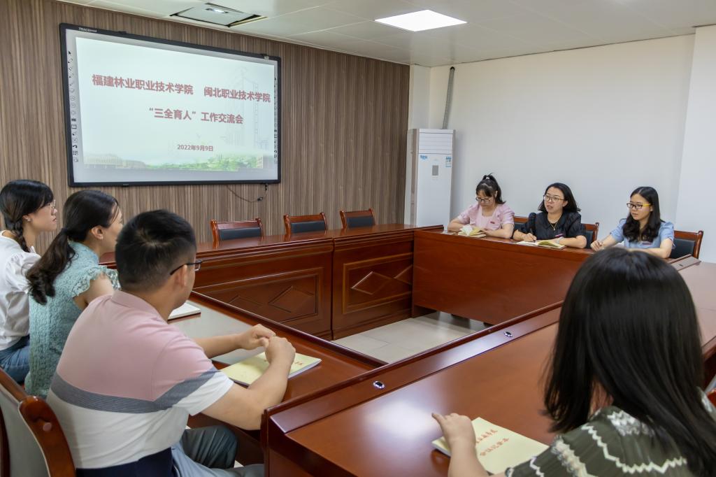 本网讯 为进一步做好学院“三全育人”工作,推进党建与业务工作相融相促,9月9日上午,宣传部党支部一行4人到闽北职业技术学院开展“三全育人”工作交流暨主题党日活动,交流学习以座谈会形式开展。