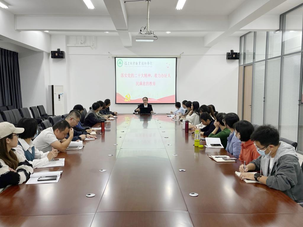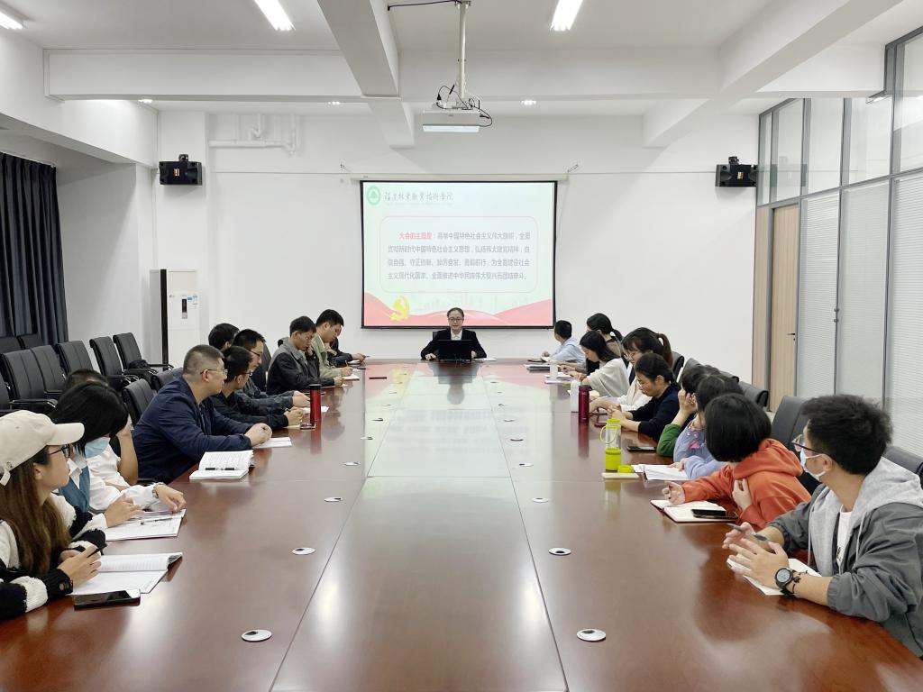 初心如磐担使命,砥砺奋进谋新篇。陈莉书记强调:习近平总书记所作的报告,思想深邃,气势磅礴,客观总结了过去的五年和新时代十年的伟大变革。认真学习宣传贯彻党的二十大精神,是当前和今后一个时期的首要政治任务,全体党员要以此次集中学习为契机,务必深入细致地学,学深悟透党的二十大报告的科学内涵和精神实质,全面系统地学习,联系实际地学习。各党支部可以通过“三会一课”、专题研讨、专题辅导、座谈交流等多种形式组织开展学习,确保学习成效突出。同时要求全体党员在今后的工作中:一是要始终坚持以党的二十大精神为指引,学在深处,干在实处,涵养初心,奋勇前行。二是要始终牢记使命在身,责任在肩,立足岗位,守正创新。三是要始终坚持立德树人根本任务,努力提高育人水平,强化育人担当,努力培养高素质技术技能人才。最后强调,当前疫情防控环境复杂,形势严峻,全体党员务必始终高度重视疫情防控工作,筑牢安全意识,自律自省,认真履职,深入基层,深入教学和学生管理一线,守好安全底线,确保工作稳定有序。