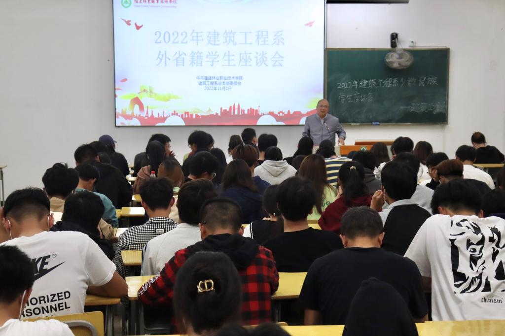 多年来,建筑工程系在新生入学后举办少数民族和外省籍新生座谈会,听取意见,交流思想、统一认识,是我系扎实做好少数民族学生教育管理服务工作形成的一项工作传统,也是学院真诚关心爱护少数民族学生的具体表现。