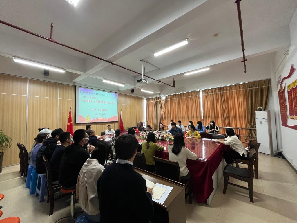 2022年11月8日,罗立仪副院长为园林系师生党员开展“中国式的现代化:高等教育的挑战、责任与使命”——学习贯彻党的二十大精神专题党课,园林系全体教师党员和学生党员代表共同参与学习,受益颇丰。