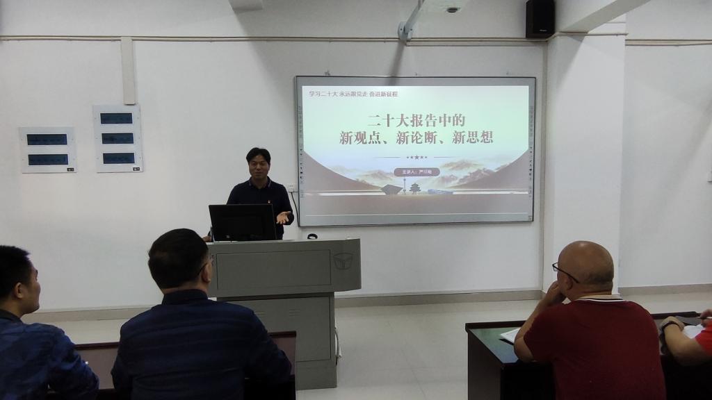 为进一步学习宣传党的二十大精神,掀起学习贯彻党的二十大精神热潮,2022年11月10日下午,学院党委副书记严绍裕为建筑工程系师生党员和其所联系班级学生讲授主题为“二十大报告中的新观点、新论断、新思想”专题辅导党课,旨在引领广大师生党员和青年学生更好的学习党的二十大精神,进一步提高政治素质、理论修养和业务能力,推动各项工作干在实处、走在前列,更好的开创未来。