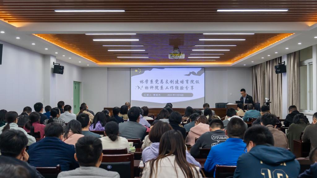 林学系党总支书记傅成杰从林学系党总支的基本情况、工作举措、成效经验、标志成果、努力方向五个方面展开分享,其中重要阐述了对标“七个有力” ,着力打造和创建高质量的党建品牌、教师党支部打造“六个课堂” , 学生党支部打造“五个一”工程建设等重要工作举措。同时在成效经验方面,分享了林学系党总支是如何以党建促业务,深化教育教学改革,构建“4653”工作机制,该分享很好的总结了林学系党总支的建设经验、做法。
