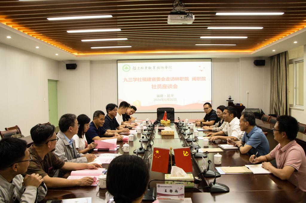 5月20日下午,九三学社福建省委专职副主委林修凤、九三学社南平市委主委、南平市医保局局长肖光彪,九三学社南平市委专职副主委吕婧,九三学社南平市农林支社主委、延平区经济信息中心主任陈瑞敬,九三学社南平市委办公室四级主任科员张国清等一行5人莅临我院座谈交流。学院党委书记陈建辉,党委副书记严绍裕,组织部(统战部)副部长赵诗羽,以及我院、闽北职业技术学院九三学社部分社员参与座谈。
