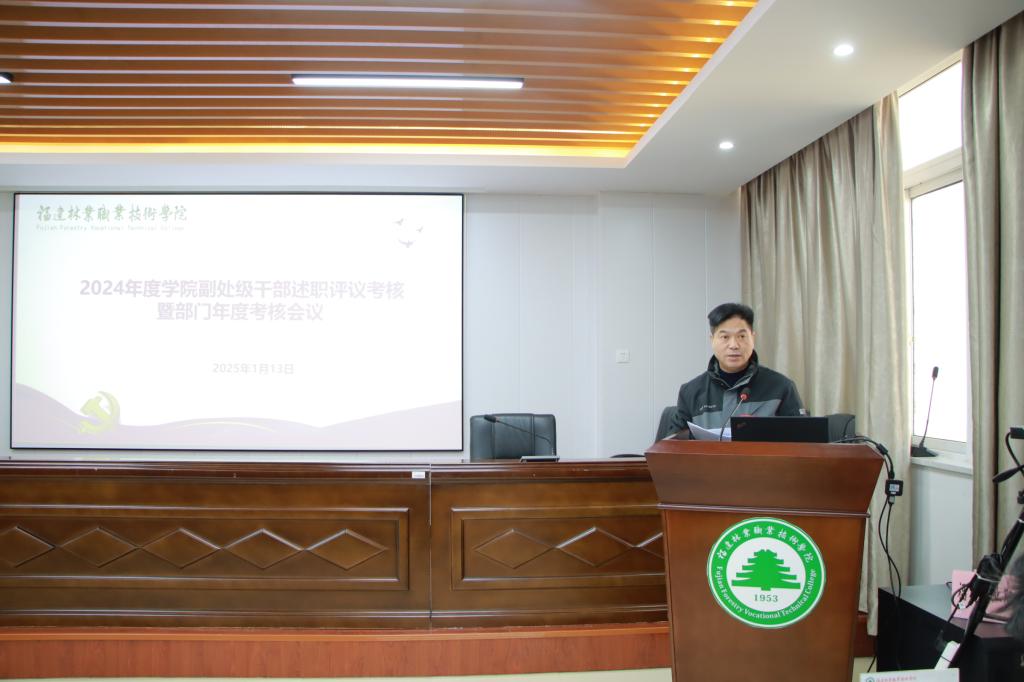 1月13日,学院召开2024年副处级干部述职评议考核暨部门年度考核会。院领导陈建辉、刘文开、严绍裕、詹其仙、黄晖、李肇锋出席会议。会议由院党委副书记严绍裕主持。