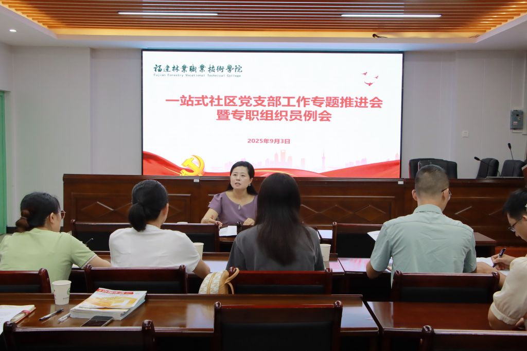李霞部长围绕《中共福建林业职业技术学院委员会关于印发学生社区兼合式党支部建设与管理办法的通知》《中共福建林业职业技术学院委员会关于开展“一站式”学生社区党建工作的通知》两个文件进行了详细解读,各系专职组织员认真学习文件精神,对标“一站式”学生社区党支部建设要求展开积极讨论。