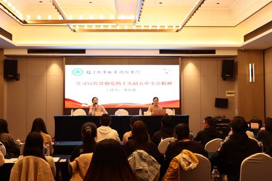 院宣传部部长邹小燕副教授为与会同学上了《党的十九届五中全会精神解读》专题党课,从党的十九届五中全会的基本情况、五中全会的特点亮点原则主线、准确把握《建议》的核心要义、准确把握《建议》的主要内容等四个方面向给同学们上了生动的一课,进一步加强党建引领作用,提高思想育人成效。