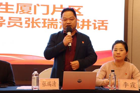顶岗实习学生厦门片区临时党支部指导员张瑞清校友带来了《不忘初心 砥砺前行》微党课,向现场毕业生党员阐述了新形势下党内政治生活的若干准则,勉励与会学生党员不忘初心,饮水思源;铭记校训,砥砺前行;树立榜样,贡献力量;遵纪守法,严格律己,朝着自己的目标努力奋斗。张瑞清校友还指出校友会将给同学们提供岗位推荐、校友资源点对点帮扶、校友会免费活动、法律援助、困难帮扶、党建学习平台等支持与保障,让与会同学在得到深刻思考和启迪的同时也感受到厦门校友会这个大家庭的温暖。