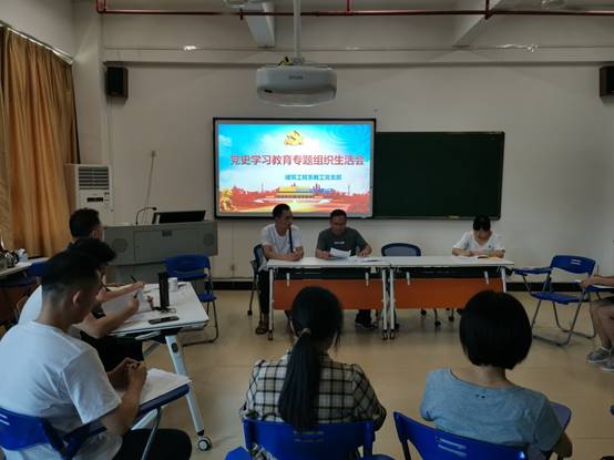 为学习贯彻落实习近平总书记在党史学习教育动员会讲话精神,深入开展党史学习教育活动,学党史,悟思想,办实事,开新局,把党史学习教育与学院立德树人根本任务相结合,坚定理想信念,传承红色基因,弘扬伟大精神。根据《中共福建省委党史学习教育领导小组办公室关于开展党史学习教育专题组织生活会的通知》(闽学组办发〔2021〕23号)文件精神及学院组织部统一部署安排,2021年7月9日下午,建筑工程系教工党支部在建筑工程系室内设计仿真实训室召开党史学习教育专题组织生活会,学院组织部张良英同志和教工党支部全体党员参会,学院党委副书记严绍裕同志也以支部普通党员身份参加了会议,会议由党支部书记张新民同志主持。