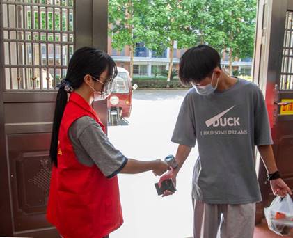 党员行动,彰显本色。信息工程系学生党员、积极分子积极响应学院《致全院基层党组织、全体共产党员的倡议书》,参加校内外志愿服务,在党组织统一调配下,主动融入校园、社区疫情防控工作。学生党员先锋岗的党员、积极分子深入学生宿舍,督查每间宿舍的卫生状况,倡导宿舍定期通风,排查消防安全隐患,做到始终以安全为第一警戒线;成立党员学习互助队,在专业上帮助指导上网课有困难的同学,争取共同进步;先锋岗的党员、积极分子组织同学有序、非聚集走向户外,适当锻炼,提醒同学们佩戴口罩、间隔排队、错位就餐,以点滴行动保卫校园安全。