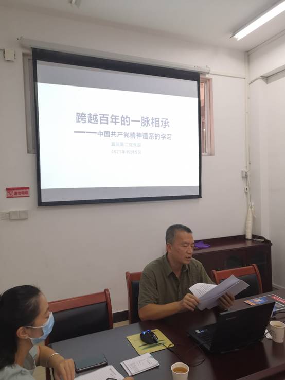 值此建党百年之际,为积极响应习近平总书记在全党开展党史学习教育的号召,进一步增强党员教师落实立德树人根本任务的思想自觉和行动自觉,在学院党委统一部署下,9月28日下午,直属第二党支部在江南校区实训二四楼会议室召开中国共产党人的精神谱系专题学习会。会议由直属第二党支部书记成榕同志主持。