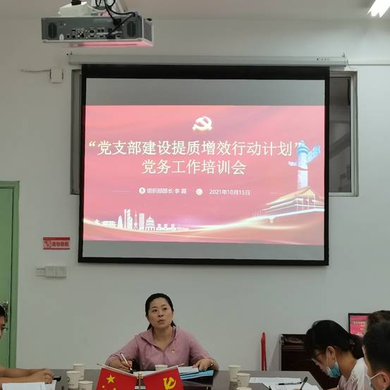 为提升基层党支部组织力、建强战斗堡垒,以标准化建设促进党员发展工作规范,以优质化建设提升发展党员质量,2021年10月15日上午,党委组织部(统战部)召开“党支部提质增效行动计划”党务工作培训会。会议由党委委员、组织部(统战部)部长李霞主持,各系党总支专职组织员、各直属支部组织委员、学生党支部书记及组织部(统战部)全体工作人员参会。
