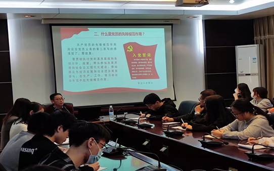 围绕为什么设立党员先锋岗这一主题,陈政书记分别从系部的党组织情况、设立党员先锋岗的目的和意义、党员先锋岗的工作运行机制等几方面进行了详细的介绍,让同学们对党员先锋岗的设置有了基本的了解。