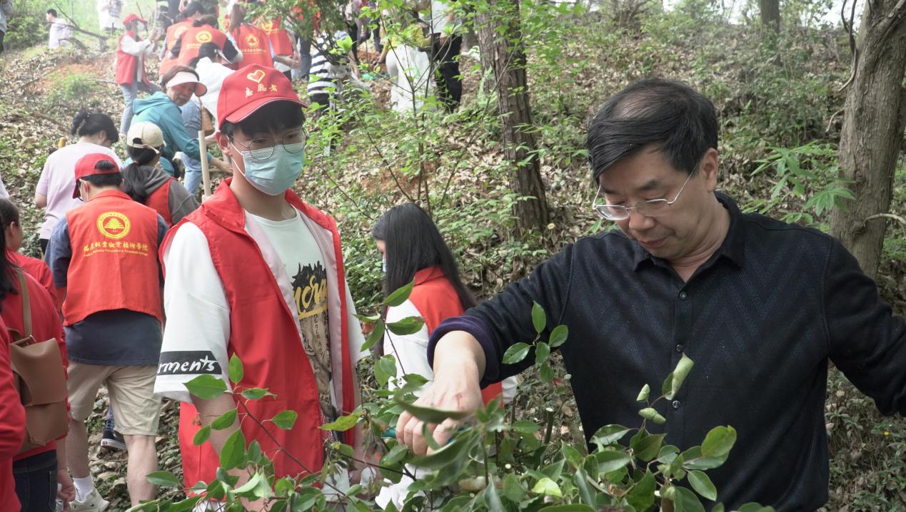 继续教育学院院长余荣卓教授指导志愿者对刚种下的树进行修剪