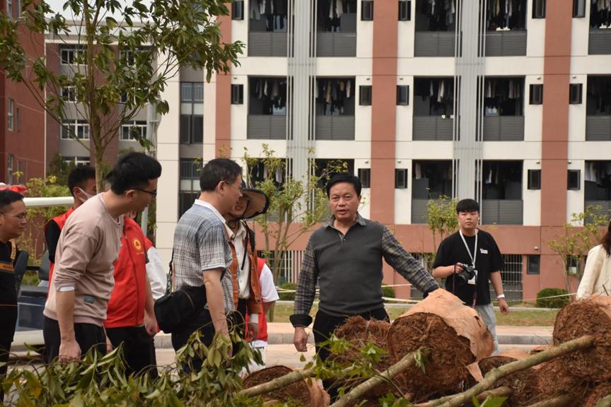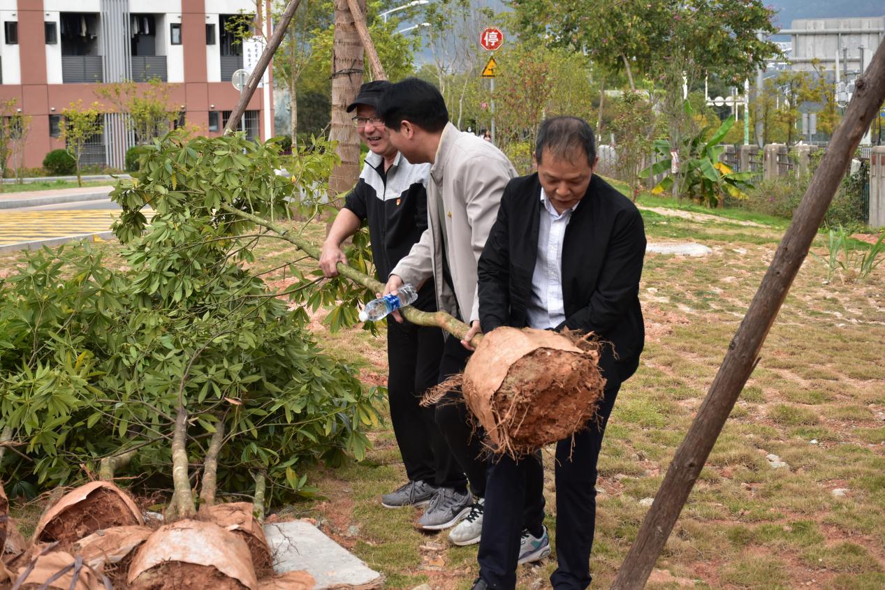 (院长刘文开和系主任彭忠伟参与植树活动现场)