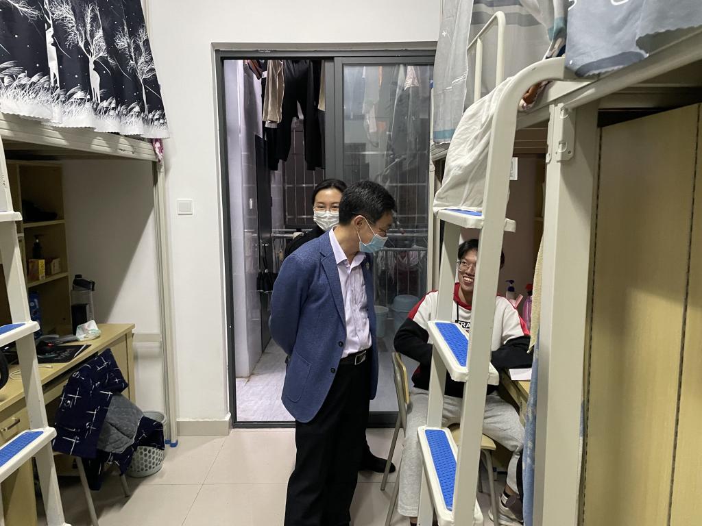 为了解封校期间我系学生的生活学习状态,3月23日晚,系党总支书记李肇锋、副书记陈莉、专职组织员兼学生科长黄雪媛、学工组全体专职辅导员共同走访学生宿舍。在走访的过程中,各位老师从各个方面了解同学们的学习和生活状态,要求他们遵守学校疫情防控规定,搞好宿舍卫生,做好宿舍通风,同时调整好自己的状态,多去室外,多去运动,以良好的心态共同战胜本次疫情。
