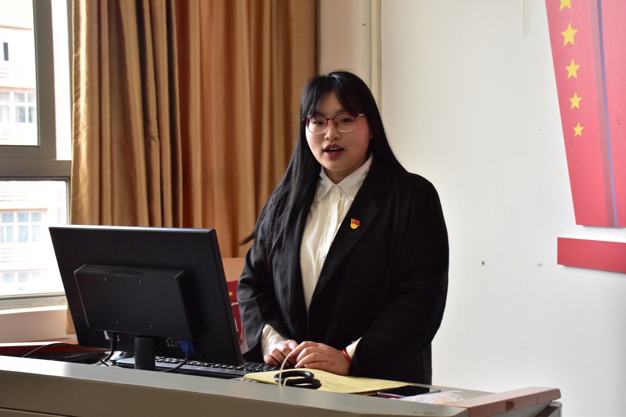 随后,预备党员代表肖淑婷同志发言,她表示,入党宣誓是一名党员政治生命开始的象征,她将会永远记住这个神圣的时刻,把入党誓词作为自己终身的追求、终身的修养和终身的实践。同时,她说到,要深深地感谢党组织对他们的关心、培养和教育;感谢党组织的老师和老党员对他们的关爱、激励和帮助。将高举党的旗帜,用实际行动争做一名先进的共产党员,一名合格的共产党员!