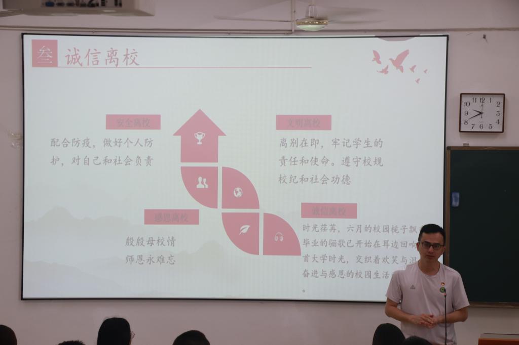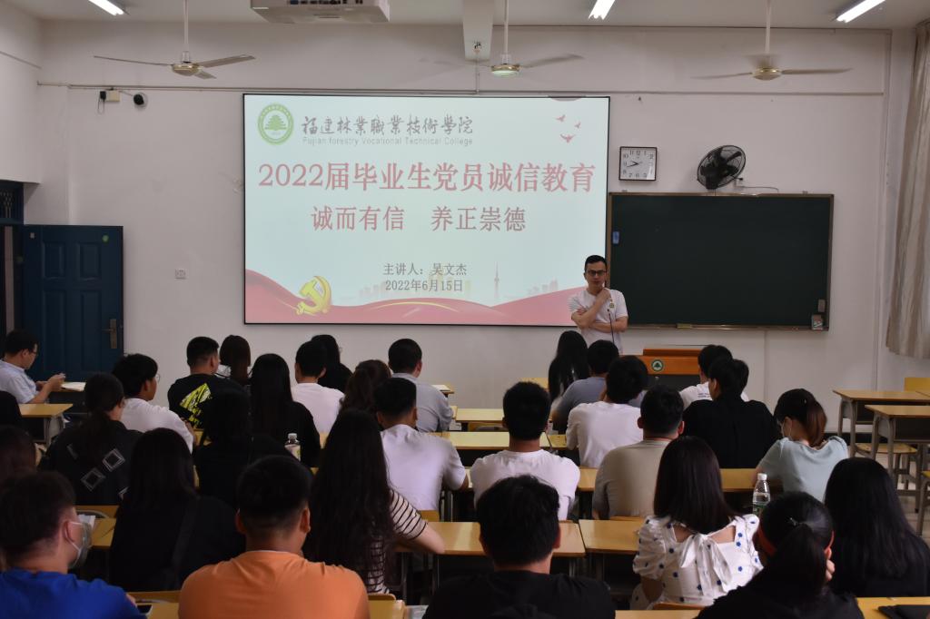 诚信是古老的伦理道德规范,是最根本的道德原则和品质,是公民道德规范的基本要求。为即将离开校园、步入社会的毕业生党员上一堂简易而又深刻的诚信教育课,强调坚守诚信美德的重要意义,更好的助力毕业生党员早日融入社会,传播正能量,学生第二党支部书记吴文杰以“诚而有信  养正崇德”主题为全系2022届毕业生党员开展一次诚信教育,他从诚信考试、生源地贷款诚信还款、诚信离校、诚信就业等四个方面进行现阶段诚信可作为方面引导,进一步深入引导全系全体毕业生党员诚信做人做事,友善待人,积极培育和践行社会主义核心价值观。