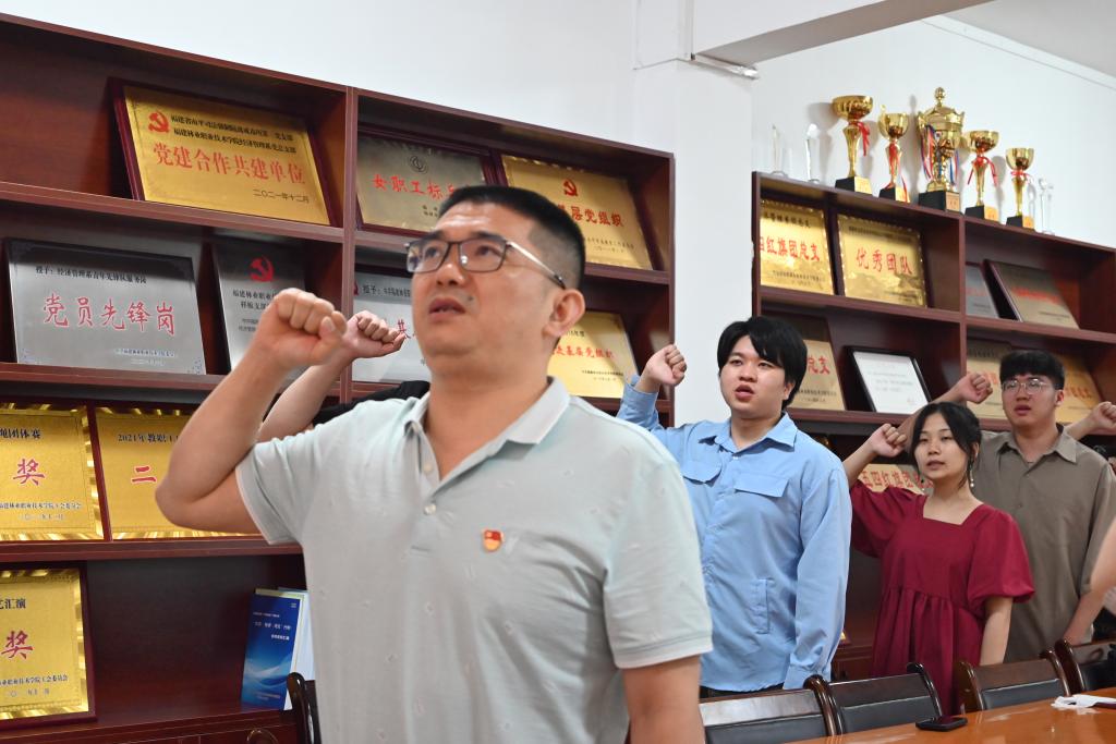 最后,谢福荣书记带领全体毕业生党员代表重温入党誓词。在铮铮誓言中重温入党的初心,坚定理想信念,牢记职责使命。