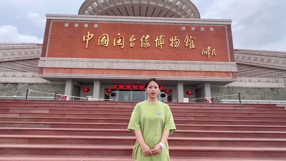 (青年学生谢嘉怡在闽台缘博物馆外发表感言)