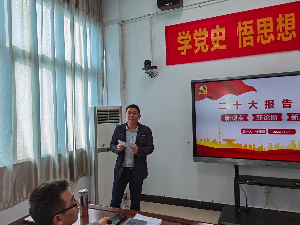 在全院上下深入学习贯彻党的二十大精神之际,为落实“领导干部要坚持带头学习、带头宣讲、带头贯彻”要求,推动党的二十大精神进校园、进课堂,入脑入心,切实把思想和行动统一到党的二十大精神上来,11月8日下午,院党委委员、院纪委书记林建斌深入信息工程系,为全系教师作题为《二十大报告中的新观点新论断新思想》专题辅导报告。报告会由信息工程系党总支书记罗志斌主持,院纪委办公室工作人员、信息工程系全体教师听取报告。