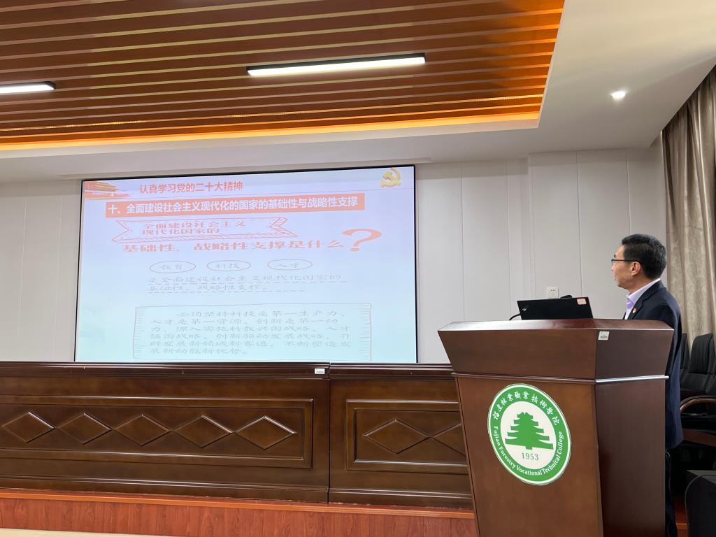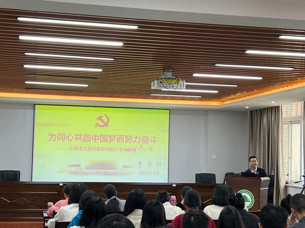 李肇锋副院长围绕深刻领会党的二十大主题、认真学习党的二十大精神、自觉践行党的二十大精神等三个方面展开本次党课学习。