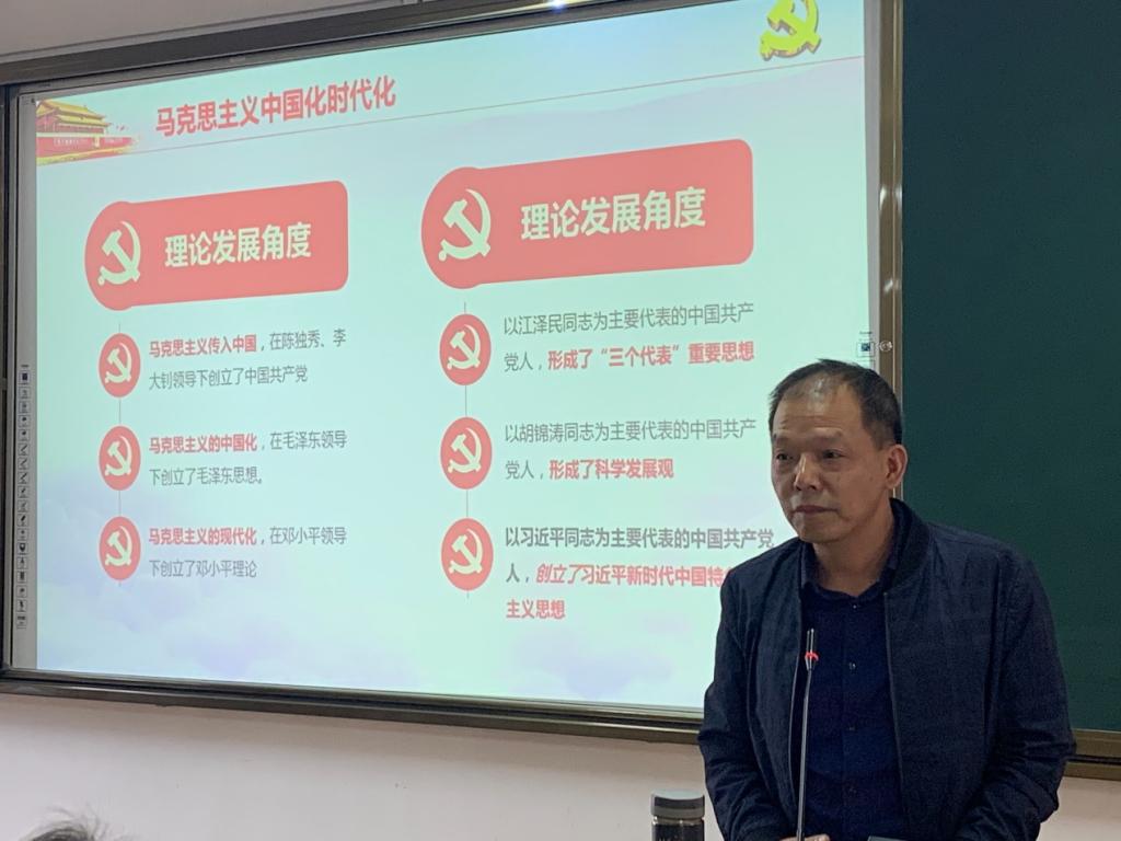 为深入学习贯彻党的二十大精神,2022年11月8日下午,院长刘文开教授深入经济管理系作题为《为全面推进中华民族伟大复兴而团结奋斗——学习宣传贯彻党的二十大精神》的专题辅导报告,报告会由系党总支书记谢福荣主持,全系教师、大数据与会计2104班学生和各党支部学生代表到场聆听。