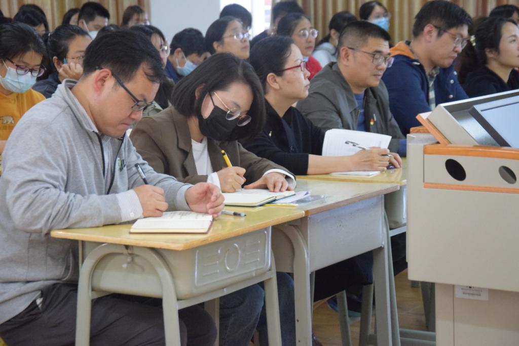 最后,刘文开院长特别强调,当代教师一定要坚持不懈用习近平新时代中国特色社会主义思想凝心铸魂。教师需做到:一、坚持推进习近平新时代中国特色社会主义思想进教材进课堂进头脑,引导学生了解国情党情民情。二、培育和践行社会主义核心价值观,教育引导学生把国家、社会、公民的价值要求融为一体。三、加强优秀传统文化教育,讲仁爱、重民本、守诚信、崇正义、尚和合、求大同的思想精华和时代价值。四、深化职业理想和职业教育,遵纪守法、爱岗敬业、无私奉献、诚实守信、公道办事、开拓创新。此外,还需重视专业教育、实践类、经济学、管理学法学类等专业课程建设,为祖国培育优秀的人才,输送新鲜的血液。