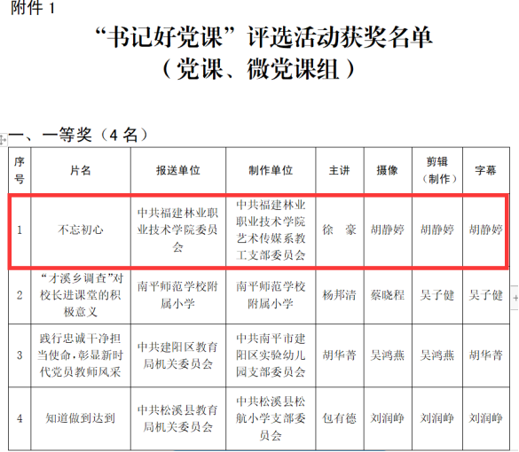 教师党支部书记徐豪主讲的微党课获南平市教育系统“书记好党课”一等奖