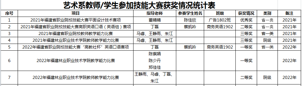 参加福建省职业院校技能大赛获奖一览表