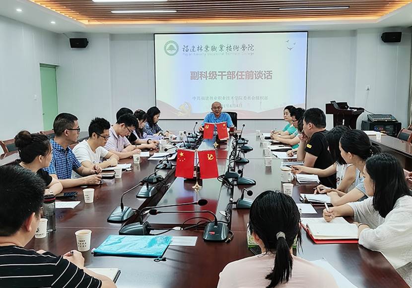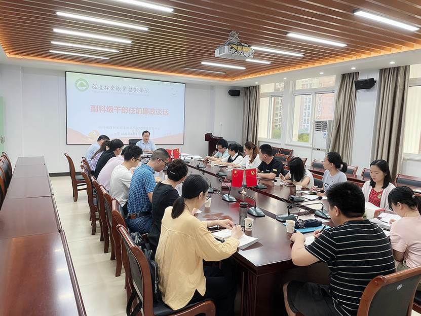 2021年6月4日,我院召开新任副科级干部任前谈话,17名新任副科级干部参加会议,院党委书记万泉、院纪委书记林建斌分别参加了集体任职谈话和廉政谈话。