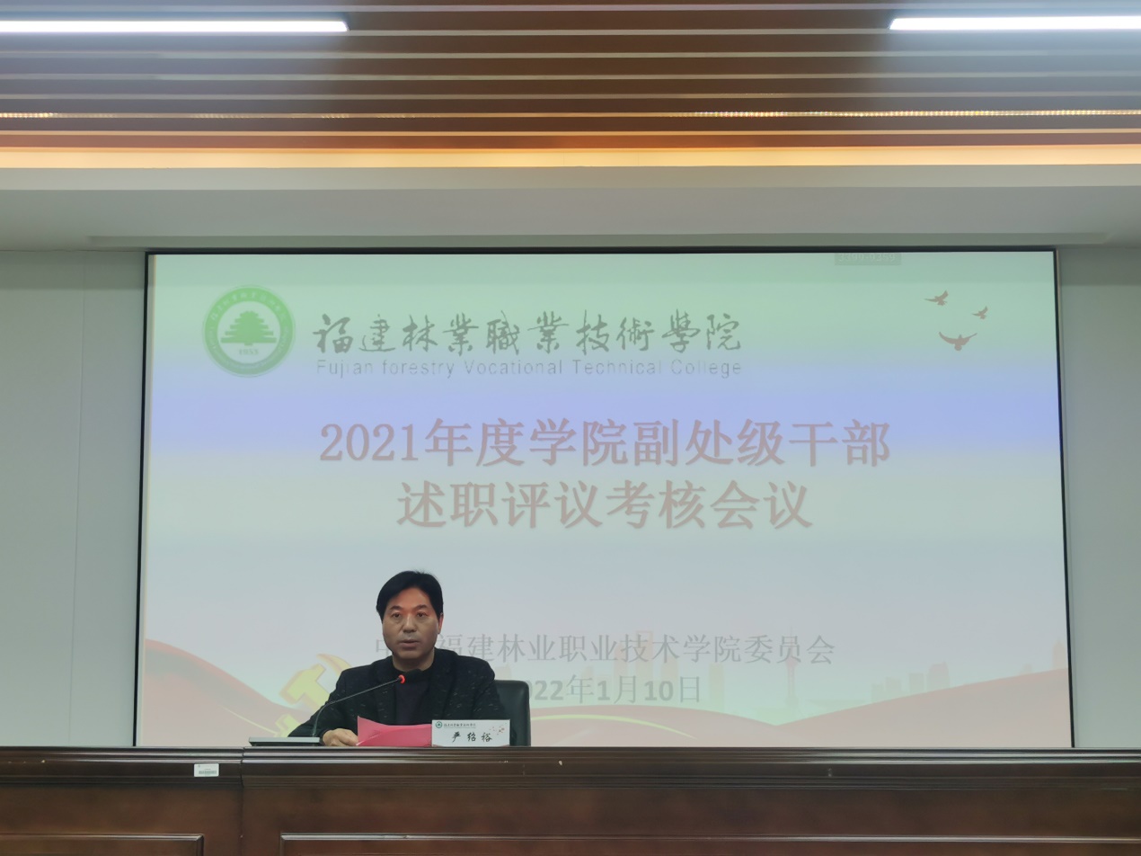 根据学院2021年度考核测评安排,110日,学院在江南校区第四会议室召开2021年院系部门负责人述职评议考核大会。院领导万泉、刘文开、严绍裕、林建斌、罗立仪、谢金生出席会议。全体中层干部、民主党派及无党派人士代表、工会代表参加会议。述职测评大会由党委副书记严绍裕主持。