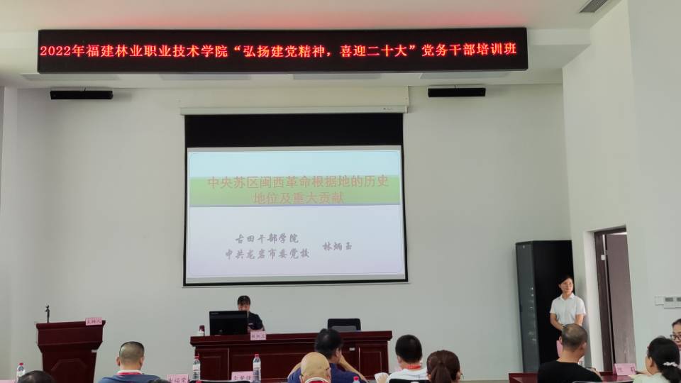 该培训班由福建林业职业技术学院党委主办,古田干部学院承办。培训学习形式主要是讲座、现场教学和微党课等,涉及讲座2场,现场教学4次,微党课2次。