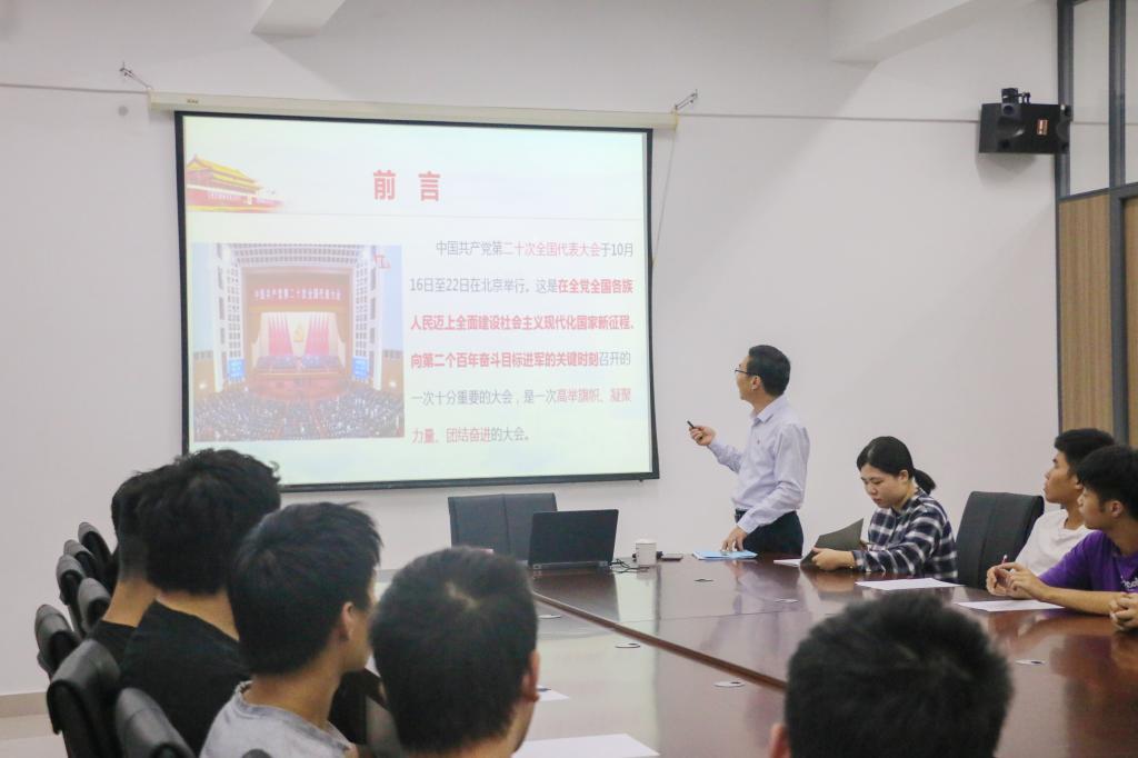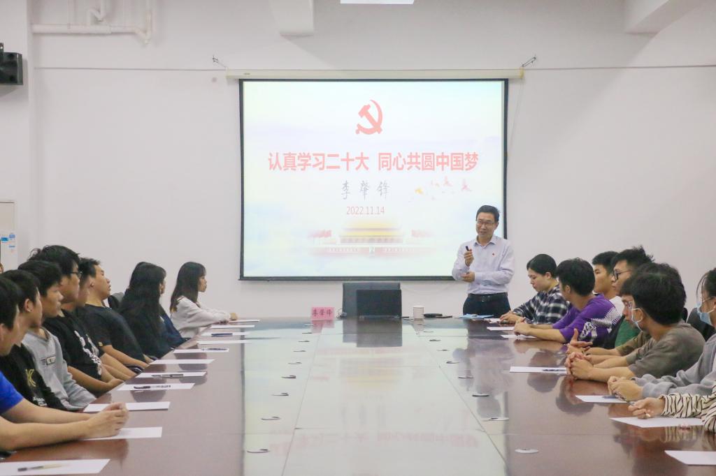 为进一步学习宣传贯彻党的二十大精神,加强青年学生理想信念教育,扎实推动党的二十大精神在青年学子头脑中落地生根,1114日下午,李肇锋副院长在交通楼五楼会议室为所联系班级学生作题为《认真学习二十大、同心共圆中国梦》的专题辅导报告,报告会由辅导员张铭主持,工程造价2105班全体学生参加。