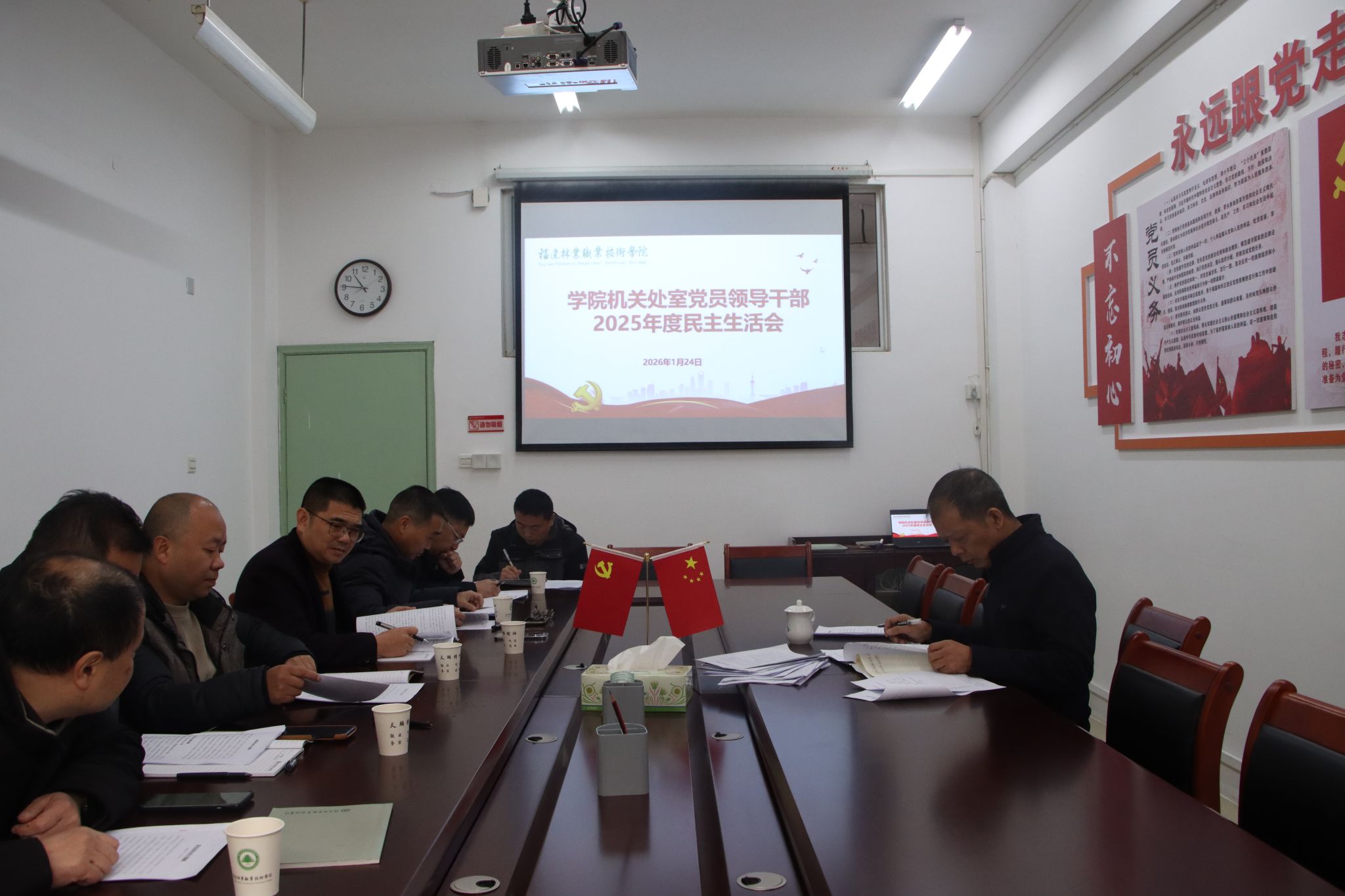 1 月 24 日,学院召开 2025 年机关处室党员领导干部民主生活会。本次民主生活会分两个小组进行,会议分别由院党委书记陈建辉和院党委副书记、院长刘文开主持。