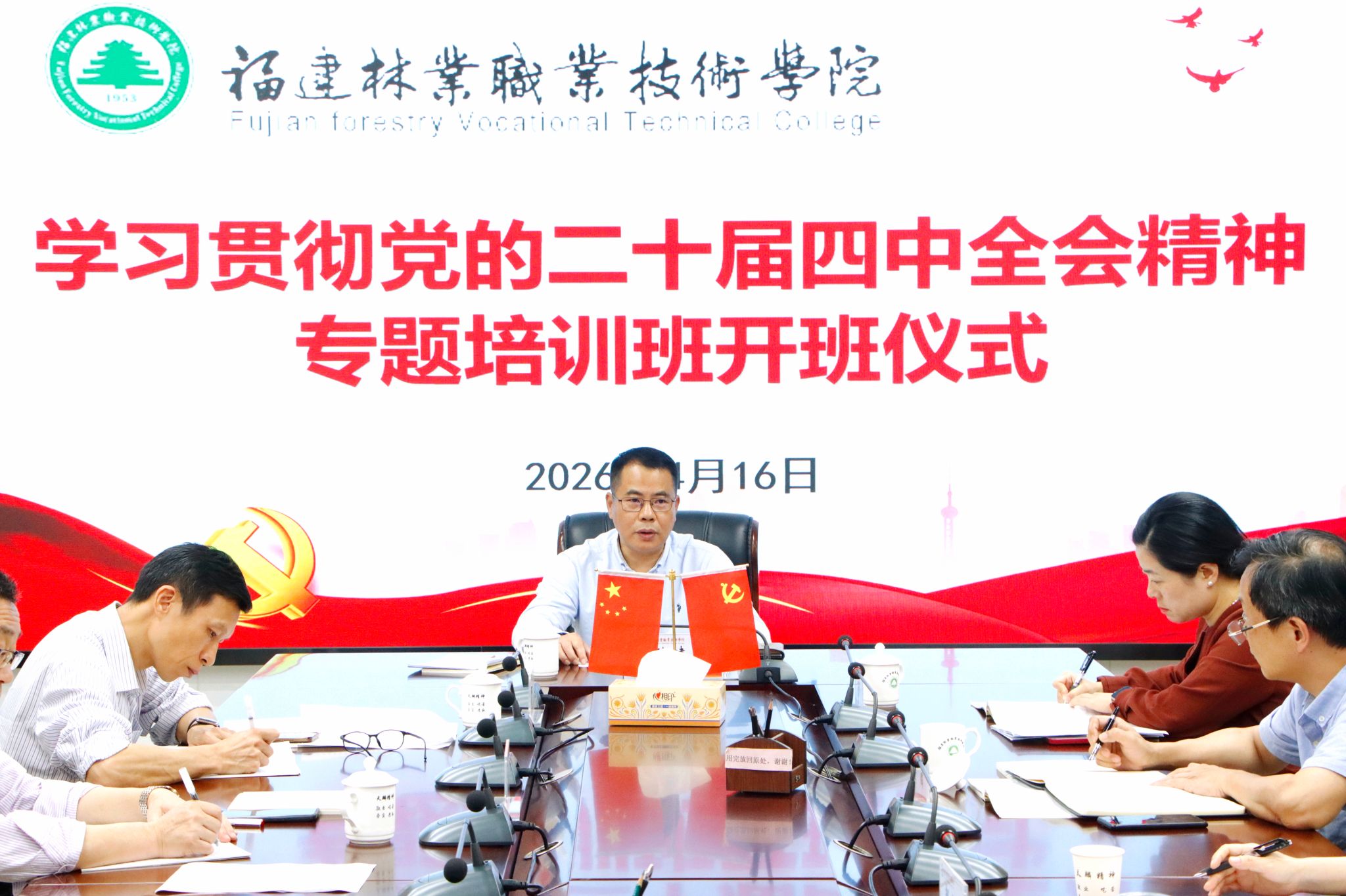 为深入学习贯彻党的二十届四中全会精神,引导广大党员干部把思想和行动统一到全会精神上来,4月16日,学院举办学习贯彻党的二十届四中全会精神专题培训班开班仪式。党委书记陈建辉作开班动员讲话,全体副处级以上干部参加培训。
