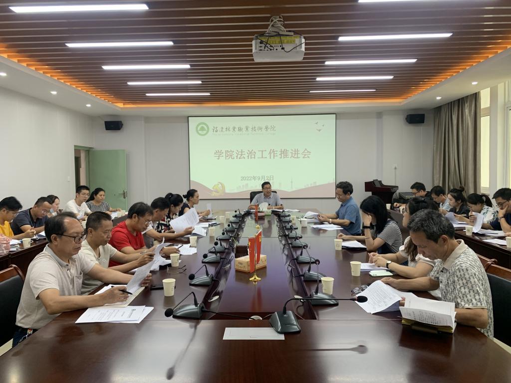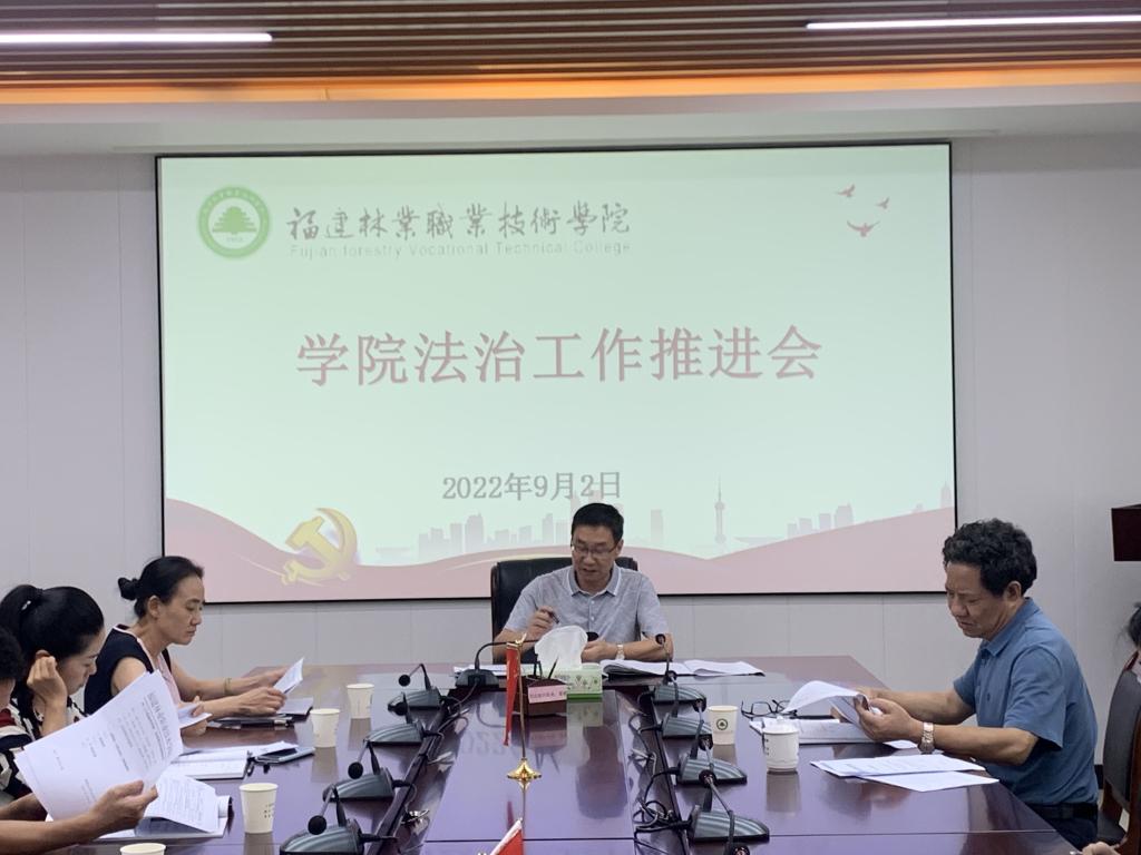 2022年9月2日学院在江南校区第一会议室召开法治工作推进会。党政办公室主任廖世建主持会议,副院长李肇锋、相关部门负责人、各部门法治工作联络员等参加会议。