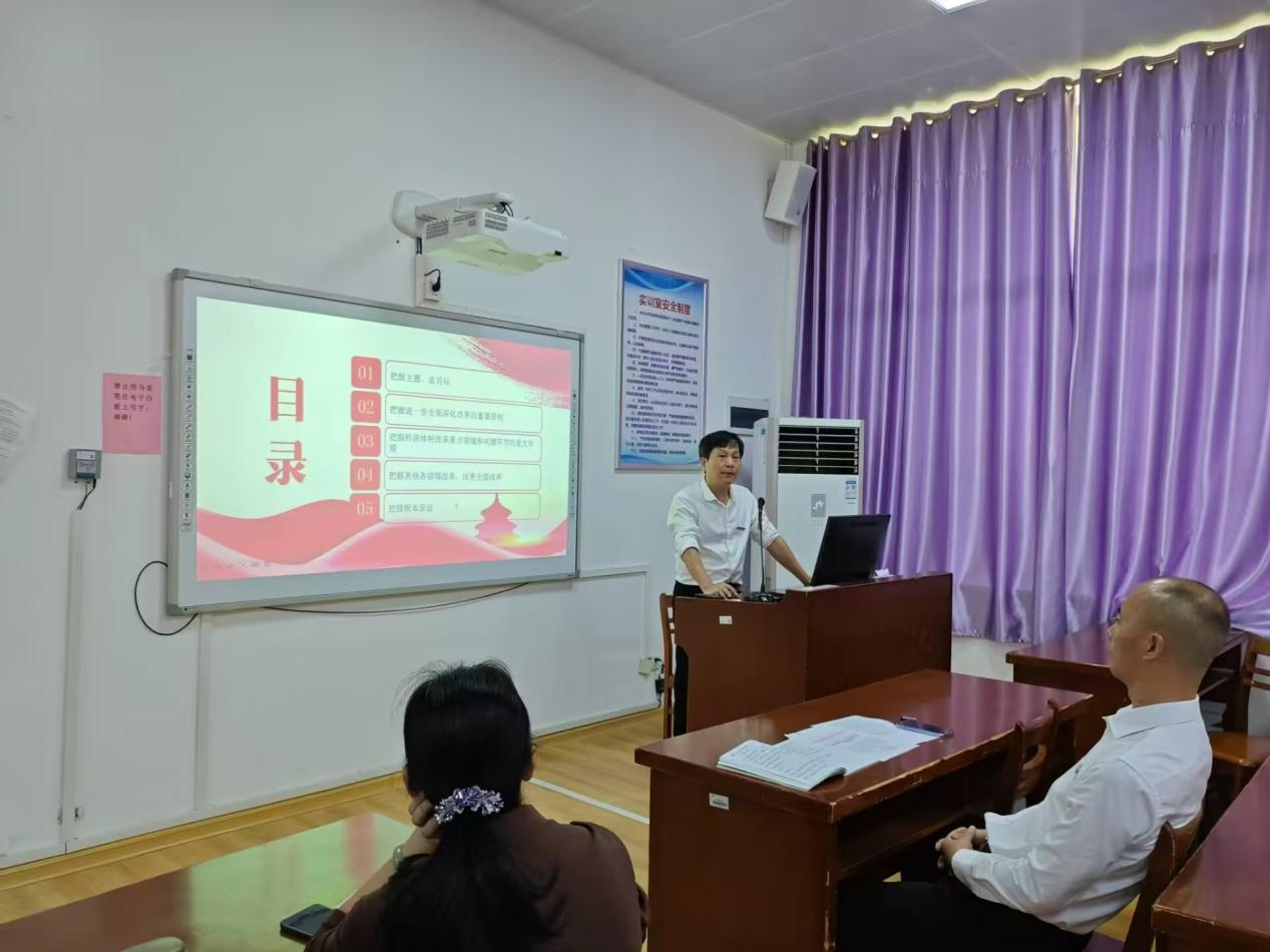 黄副院长指出,《决定》是党的十八届三中全会以来全面深化改革的实践续篇,也是新征程推进中国式现代化的时代新篇,是新征程上将改革进行到底的动员令,是进一步全面深化改革的路线图,与会教师要深刻领会全会及《决定》精神,准确把握改革方向,切实把改革要求转化为推动学校的高质量发展的强大动力。最后,黄副院长强调,学习好贯彻好党的二十届三中全会精神,是当前和今后一个时期全党全国的一项重大政治任务,是新征程推进中国式现代化的时代新篇。